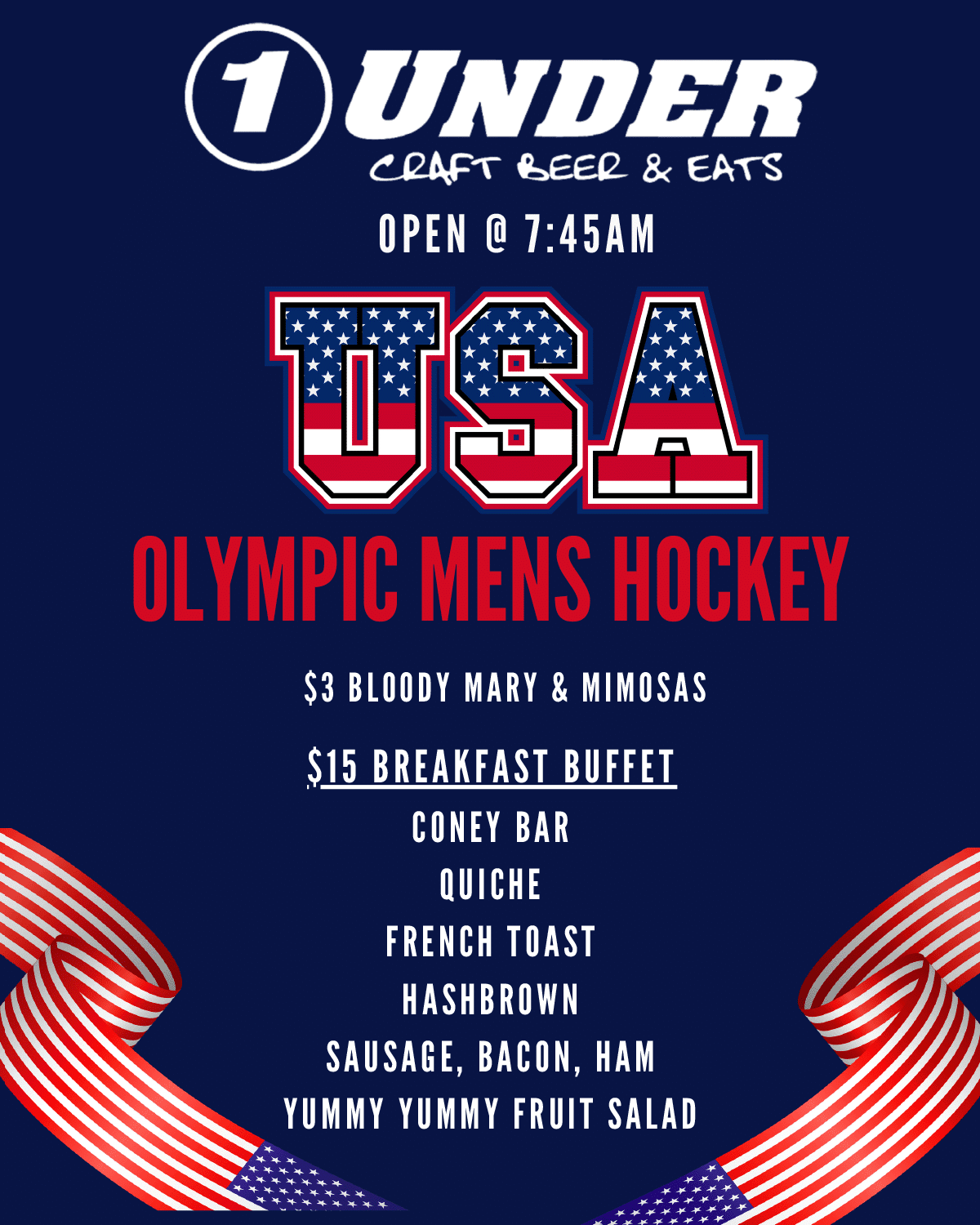 We’ll be watching all the action live at One Under Bar, located in Livonia, Michigan. Doors open early — grab your friends, wear your red, white, and blue, and get ready to bring the energy!